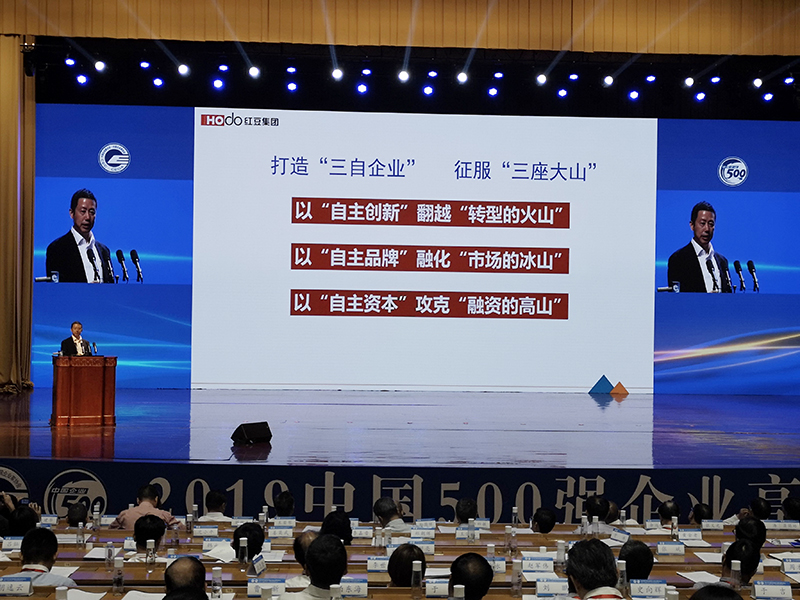 中國民間商會副會長、紅豆集團董事局主席兼CEO周海江受邀擔任本次大會聯合主席,并在企業家主題論壇就中國企業如何“做好自己事 當好自己人”為題,從“打造三自企業,做好自己事”及“當好新時代自己人”兩個方面出發,同與會者探討在當前復雜多變的全球經濟環境下,大企業的發展之道。 一方面要打造三自企業,做好自己事。周海江表示,企業當前亟需征服的“轉型的火山、市場的冰山、融資的高山”這“三座大山”,既需要各級黨和政府營造更好的發展環境,更需要廣大企業自身能夠主動應對、積極作為,做好自己的事,著力打造“三自企業”即“自主創新、自主品牌、自主資本”。