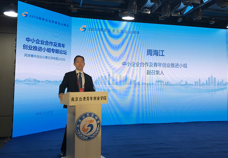 11月4-5日,2019兩岸企業(yè)家紫金山峰會(huì)在江蘇南京舉行。中共中央政治局常委、全國政協(xié)主席汪洋出席并發(fā)表演講。作為兩岸企業(yè)家峰會(huì)中小企業(yè)合作和青年創(chuàng)業(yè)推進(jìn)小組召集人的紅豆集團(tuán)董事局主席兼CEO周海江,在兩岸青年創(chuàng)業(yè)分享交流專題論壇上,鼓勵(lì)臺(tái)灣青年精英來大陸創(chuàng)業(yè),并分享了自己創(chuàng)業(yè)的故事。