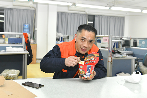 被問起這個稱呼,吳曉東倒有些難為情,“辦公室的方便面都快被我吃完了”。他解釋道,其實我們每天都有訂餐,但一些黨員突擊隊、志愿者同事來車間一線幫忙,有時候盒飯份數(shù)不夠,理應(yīng)讓他們先吃,有時候自己忙過了飯點,吃方便面省時又省事。受到身邊黨員同志高品亞、王文娟等的工作干勁感染,一句簡單的“非常時期,非常對待”體現(xiàn)了吳曉東同樣任勞任怨、毫不計較的工作態(tài)度。