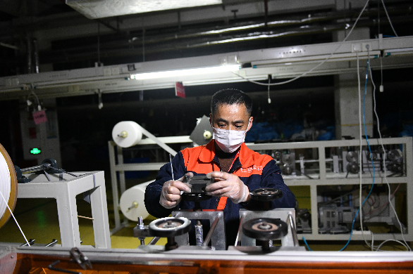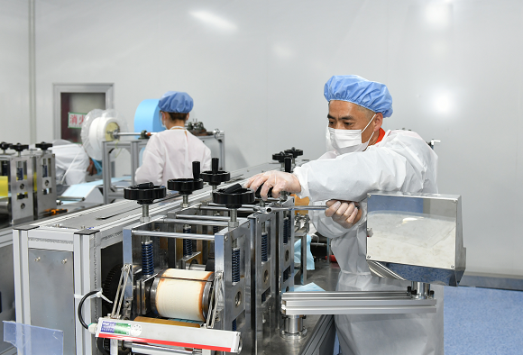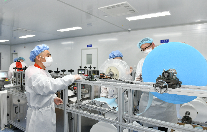 他說,剛開始心里也沒底,畢竟沒有搞過,在和小伙伴們一起研究、反復摸索后總算有了門道。吳曉東介紹,在半自動生產(chǎn)過程中,口罩面罩的生產(chǎn)由機器完成,再由人工熔接耳帶;全自動生產(chǎn)過程中,無紡布、熔噴布、鼻梁架、耳帶線等原材料只需放在對應(yīng)位置上即可,不再需要其他工序。在這些過程中,機器的精確程度都影響著次品率。長途運輸、稍有不慎,一個螺絲的松動、一個刀口的裂紋都會影響口罩面罩的切縫、鼻梁架的位置偏移,而調(diào)試工作就是讓這些機器盡可能嚴絲合縫,從而發(fā)揮最大效能。同樣面對陌生的設(shè)備,吳曉東憑借自身學習經(jīng)驗和對機械的興趣與鉆研,不斷與新設(shè)備磨合,在一次次糾正和摸索中,屢屢找出最佳解決方案。口罩全自動生產(chǎn)過程中,一條生產(chǎn)線出現(xiàn)了切不斷面罩的問題,吳曉東第一時間趕到現(xiàn)場,認真校準、仔細判斷,直到發(fā)現(xiàn)問題出在一片刀片上,只需替換即可。診斷設(shè)備的吳曉東看著沉著冷靜,其實心里也沒底,全憑經(jīng)驗摸黑前行,他坦言,最擔心生產(chǎn)前后道跟不上,不能保證產(chǎn)能,只能一點一點試、一點一點調(diào),和時間賽跑,直到合格的面罩一片片從出口快速飛出、全部設(shè)備滿負荷生產(chǎn)。從剛開始的親自安裝調(diào)試,到后來指導技術(shù)人員安裝調(diào)試口罩生產(chǎn)線,吳曉東獲得了車間管理人員和工人的一致贊譽,成為技術(shù)大師傅。