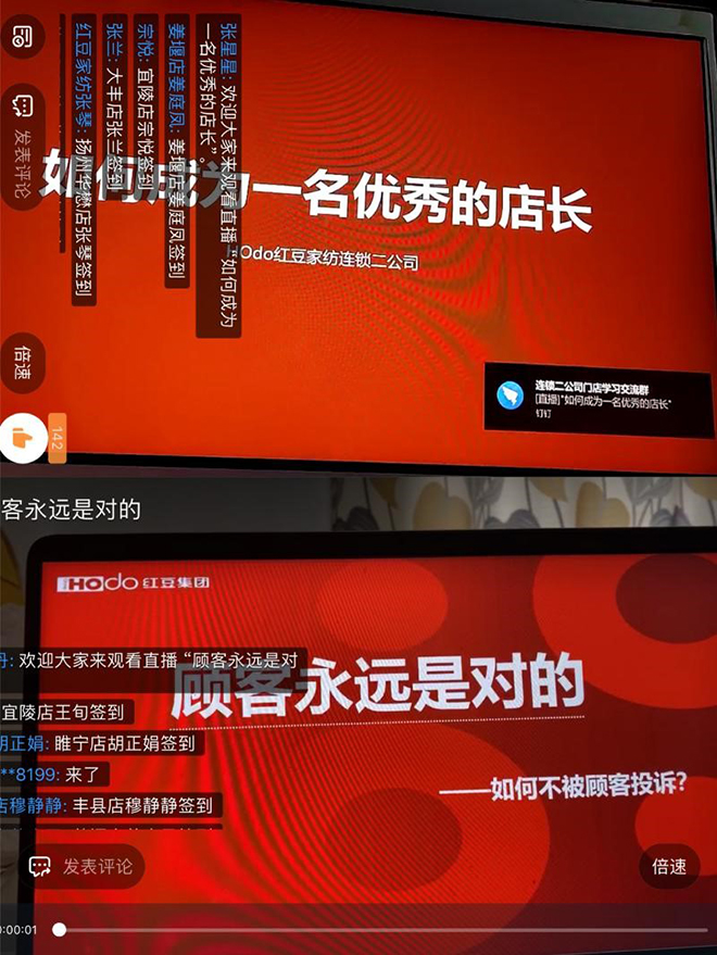 據悉,除“紅豆大學”APP外,紅豆集團旗下各公司還在利用微信、釘釘、云端等各個平臺開展線上培訓,確保培訓的多樣化和有效性。例如紅豆居家公司開展《這一秒不放棄,下一秒就會有希望!》線上培訓,對特殊時期門店客流進行了分析,并以優秀案例分析來告訴大家如何增量用戶,該場培訓參與總計超2300人次。還有,紅豆家紡連鎖二公司的《如何成為一名優秀的店長》培訓、紅豆國際的《市場多元化拓展培訓》等都取得了良好的反響。據統計,從1月31日至3月9日,整個紅豆集團累計開展培訓超700場次,參與培訓28萬人次。