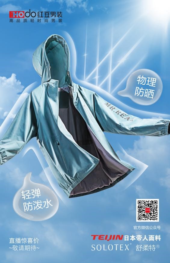 此外,紅豆男裝還將推出爆款輕夾克。紅豆輕夾克具備輕彈、有型、防潑水的特質,多款多色可滿足不同風格、年齡人群的需求。并且,面料采用了遮陽科技面料,能夠抵擋部分有害光線,是夏日戶外的必備品。作為輕系列的經(jīng)典產(chǎn)品,紅豆輕夾克延續(xù)了輕松簡約的輕時尚風格,輕質面料能夠減輕身體的負擔、解放肢體,擺脫整個冬季厚重外衣的束縛,亦能有效抵御料峭春寒,兼具實用性與時尚感。
