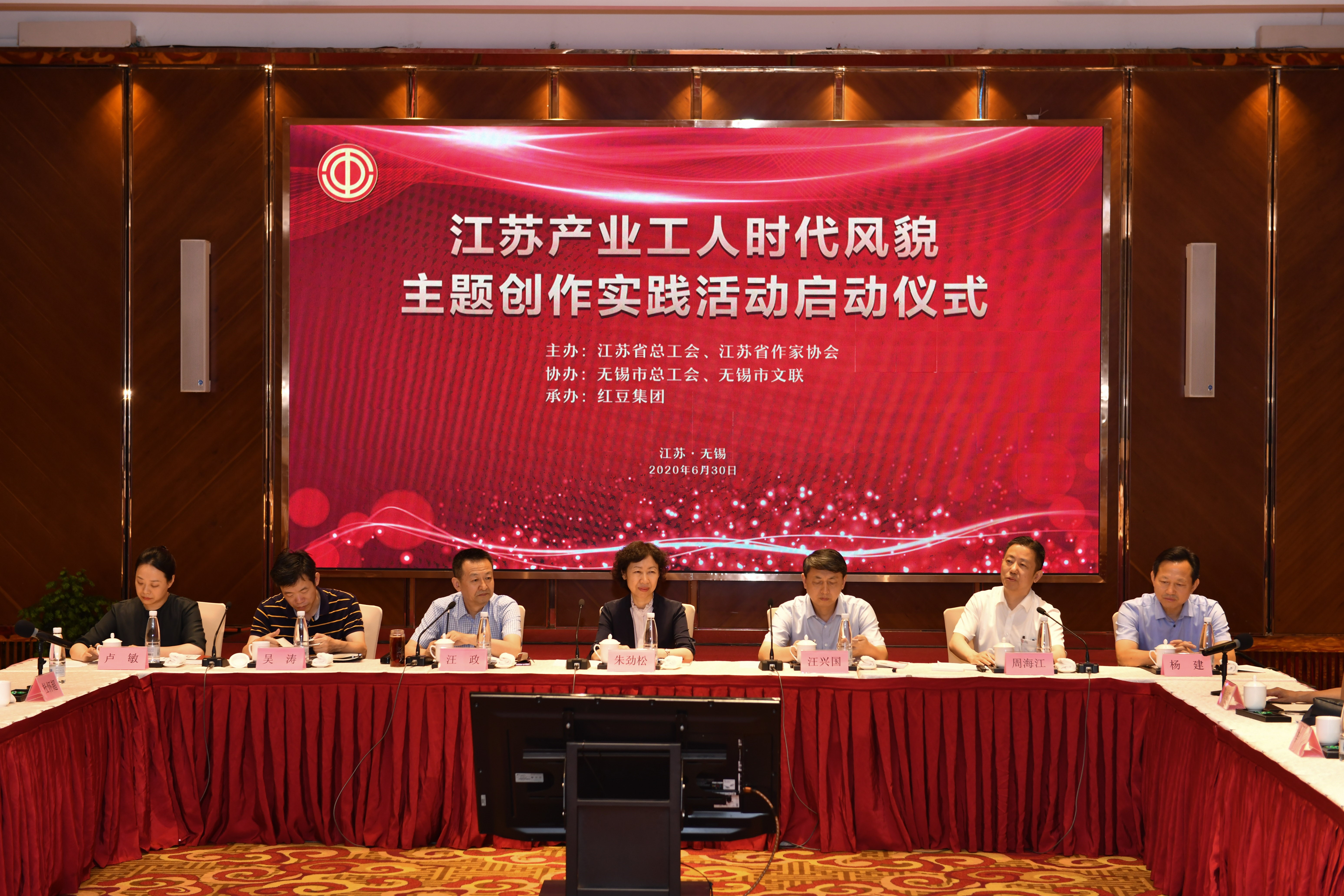 6月30日,“江蘇產(chǎn)業(yè)工人時代風(fēng)貌”主題創(chuàng)作實踐活動啟動儀式在無錫紅豆杉莊舉行,活動由江蘇省總工會和江蘇省作家協(xié)會主辦。江蘇省總工會黨組書記、副主席朱勁松,江蘇省作協(xié)黨組書記、書記處第一書記、副主席汪興國,省作協(xié)黨組成員、書記處書記、副主席汪政,無錫市總工會黨組書記、副主席吳濤,無錫市文聯(lián)黨組書記楊建,紅豆集團有限公司黨委書記、董事局主席兼CEO周海江等出席,江蘇省作協(xié)黨組成員、書記處書記、副主席汪政主持儀式,來自全省各地的作家代表20余人參加了活動。