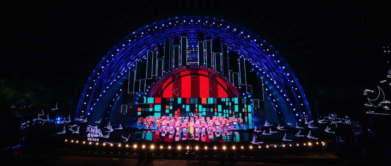 從2016年首度合作至今,紅豆集團(tuán)聯(lián)合央視推出七夕特別節(jié)目已經(jīng)走過(guò)了五個(gè)年頭,也是這臺(tái)晚會(huì)選擇戶外錄制的第四年。2016年,紅豆為央視中國(guó)情人節(jié)特別節(jié)目隆重代言,正式拉開(kāi)同央視合作的帷幕,與“天下有情人”共度浪漫七夕。2017年,這臺(tái)七夕晚會(huì)首次走出演播室,進(jìn)駐七仙女傳說(shuō)之鄉(xiāng)江西新余,在旖旎的仙女湖畔搭建實(shí)景舞臺(tái),在古典風(fēng)潮與現(xiàn)代技術(shù)融合中,來(lái)了一場(chǎng)精妙唯美的時(shí)空穿越之旅。2018年,晚會(huì)首次在南北兩個(gè)會(huì)場(chǎng)平行推進(jìn),南依然是江西新余仙女湖,北則選了有著深厚七夕節(jié)文化淵源的陜西西安昆明池,南方的溫柔婉約和北方的古樸大氣在七夕交相輝映;2019年于仙女湖畔描繪“七彩七夕”,鄰水而建的舞臺(tái)與水面倒影,形成水天一色的美景,盡顯古典風(fēng)韻。