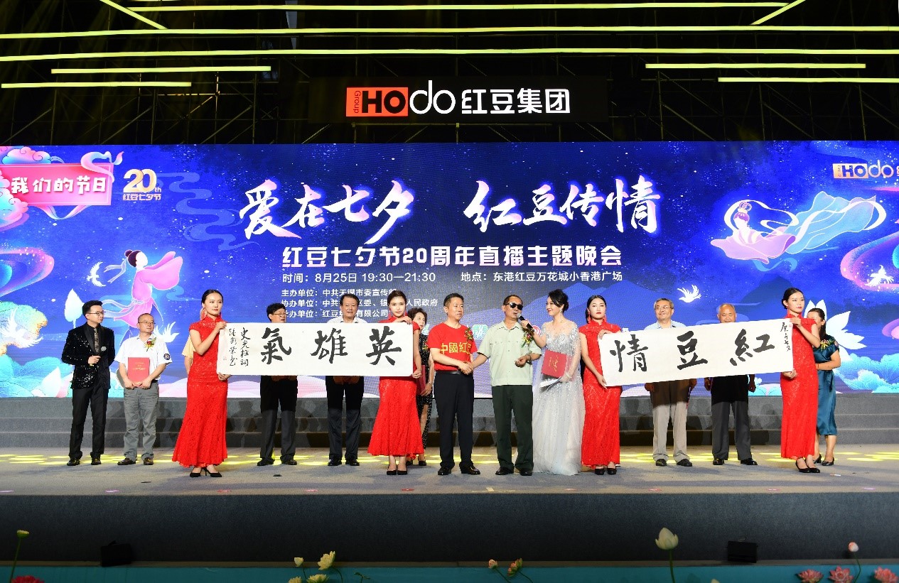 8月25日晚,在第二十屆紅豆七夕節(jié)晚會現(xiàn)場,當兩幅蒼勁有力的書法作品“紅豆情 英雄氣”展現(xiàn)在觀眾面前時,現(xiàn)場爆發(fā)出了雷鳴般的掌聲。這是一級戰(zhàn)斗英雄、最美奮斗者、作家史光柱專門送給紅豆七夕節(jié)二十周年的墨寶。