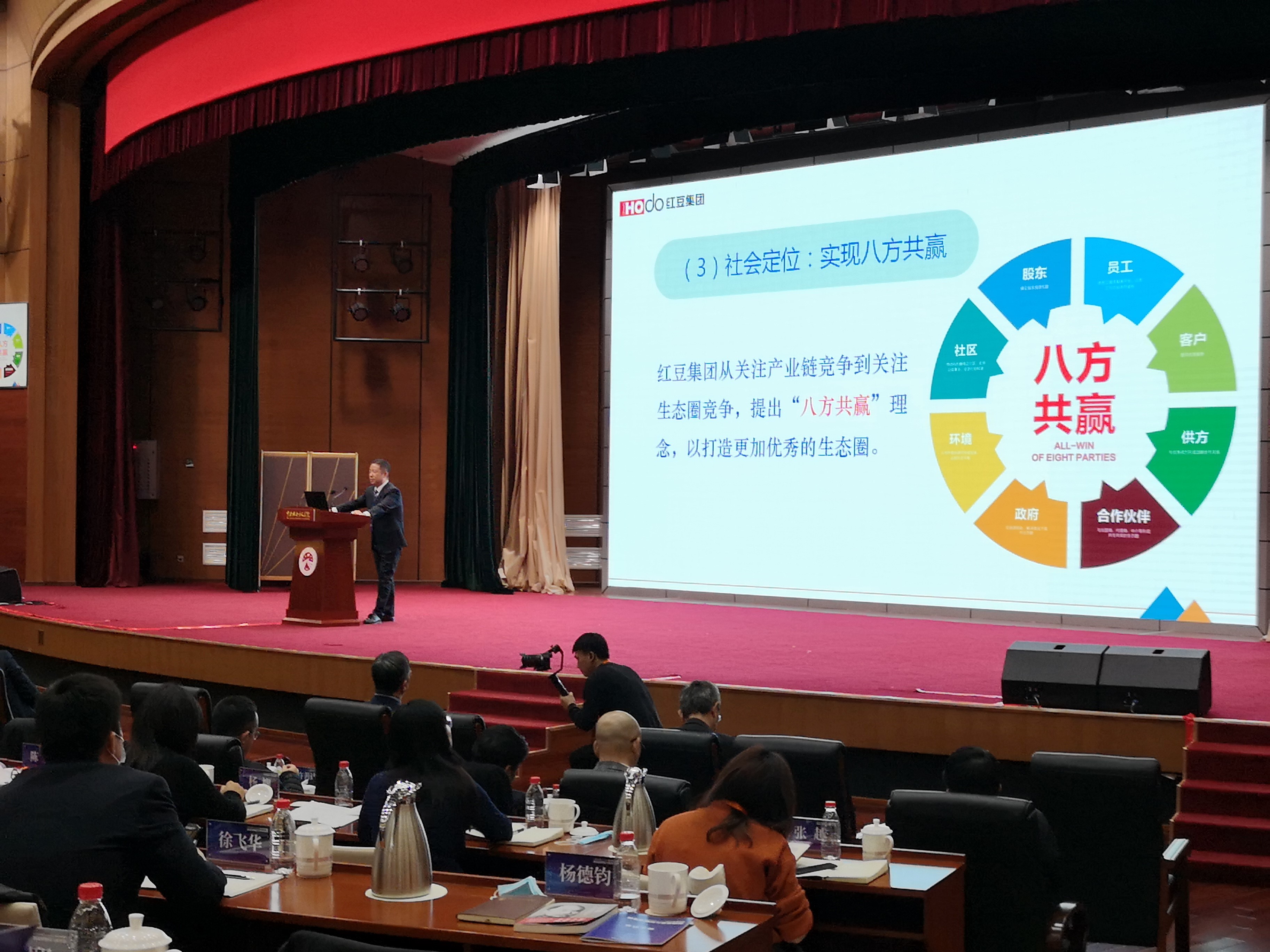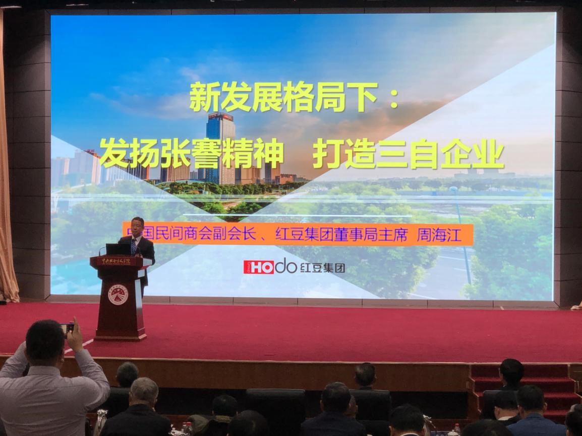 12月12日,張謇精神的時(shí)代意義2020年度論壇在中央社會(huì)主義學(xué)院開(kāi)幕,兩百多專家、學(xué)者和企業(yè)家參加了論壇。全國(guó)人大常委會(huì)副委員長(zhǎng)、民建中央主席、中央社會(huì)主義學(xué)院院長(zhǎng)、中華職業(yè)教育社理事長(zhǎng)郝明金,中央統(tǒng)戰(zhàn)部副部長(zhǎng)、國(guó)務(wù)院僑務(wù)辦公室主任、中央社會(huì)主義學(xué)院第一副院長(zhǎng)潘岳,中華全國(guó)工商業(yè)聯(lián)合會(huì)黨組成員、副主席李兆前,江蘇省委常委、統(tǒng)戰(zhàn)部部長(zhǎng)楊岳等領(lǐng)導(dǎo)出席論壇,論壇以“新發(fā)展格局與張謇精神”為主題,大家將圍繞“雙循環(huán)”新發(fā)展格局下的民營(yíng)經(jīng)濟(jì)發(fā)展、實(shí)體經(jīng)濟(jì)的高質(zhì)量發(fā)展與職業(yè)教育、愛(ài)國(guó)企業(yè)家典范的內(nèi)涵闡釋三個(gè)議題板塊作主旨演講和探討。紅豆集團(tuán)董事局主席周海江應(yīng)邀參加論壇,并作了“新發(fā)展格局下 發(fā)揚(yáng)張謇精神打造三自企業(yè)”主題演講。