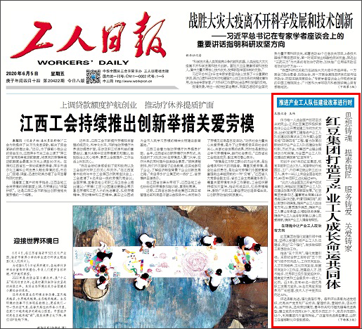 作為唯一入選全國產(chǎn)改項目試點的民企,江蘇紅豆集團積極探索在非公企業(yè)開展黨建工作的方式方法,出臺《黨建帶工建推進產(chǎn)業(yè)工人隊伍建設(shè)改革試點工作方案》,全面實施“四鑄四有”工程,著力改革創(chuàng)新紡織行業(yè)產(chǎn)業(yè)工人隊伍建設(shè)體制機制、方式方法,為集團產(chǎn)業(yè)強企提供動力和保障,為全國產(chǎn)業(yè)工人隊伍建設(shè)改革探索“紅豆樣本”。
