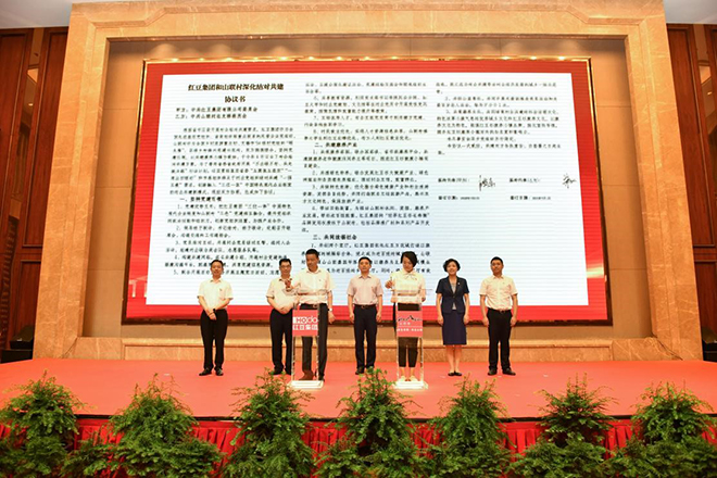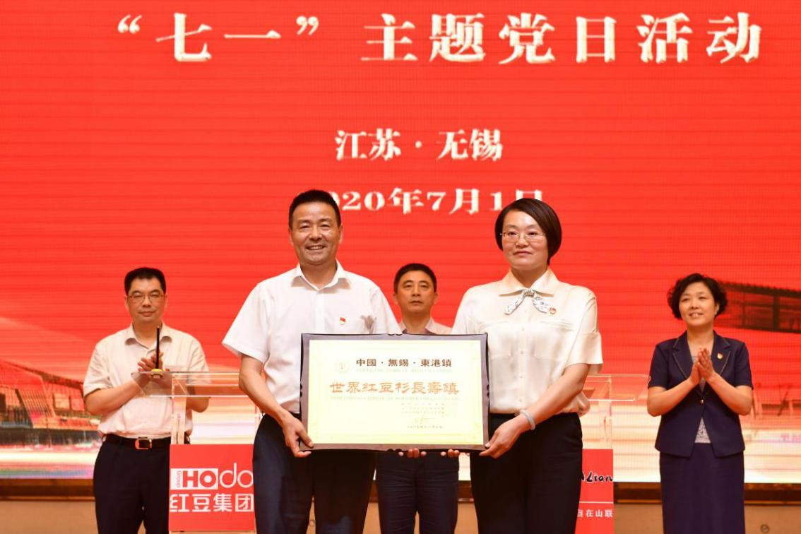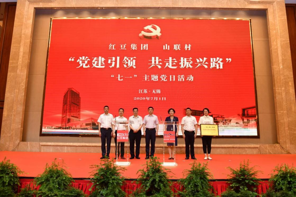 村企聯(lián)姻一家親,攜手共進(jìn)助振興。 7月1日下午,紅豆集團(tuán)、山聯(lián)村“黨建引領(lǐng)共走振興路”“七一”主題黨日活動(dòng)在紅豆杉莊舉行。活動(dòng)上,紅豆集團(tuán)與山聯(lián)村深化結(jié)對(duì)共建正式簽約;為推動(dòng)山聯(lián)村休閑、度假、康養(yǎng)產(chǎn)業(yè)發(fā)展,帶動(dòng)百姓致富,紅豆集團(tuán)還將“世界紅豆杉長(zhǎng)壽鎮(zhèn)”品牌使用權(quán)授予山聯(lián)村。
