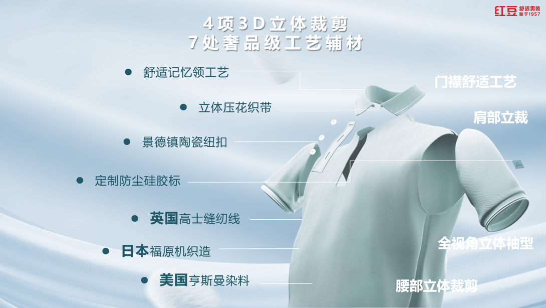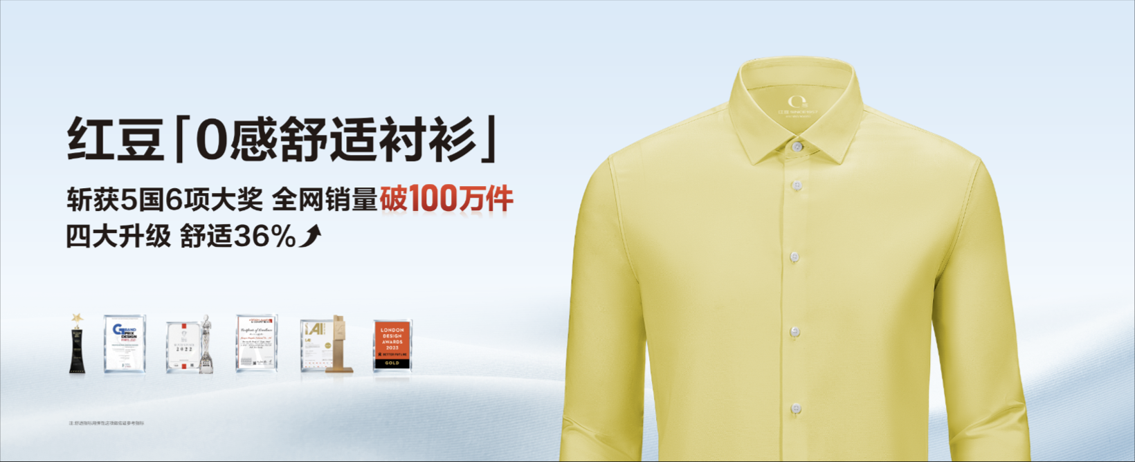 定位“經典舒適男裝”,紅豆男裝全方位進行品牌高端化戰略轉型,2022年以行業首創AR發布會形式推出新一代舒適襯衫“紅豆0感舒適襯衫”,被中國服裝協會授予“舒適男裝賽道開創者”稱號,2024年紅豆0感舒適襯衫四大升級,舒適提升36%。紅豆,讓更多人穿上奢侈品級舒適男裝。